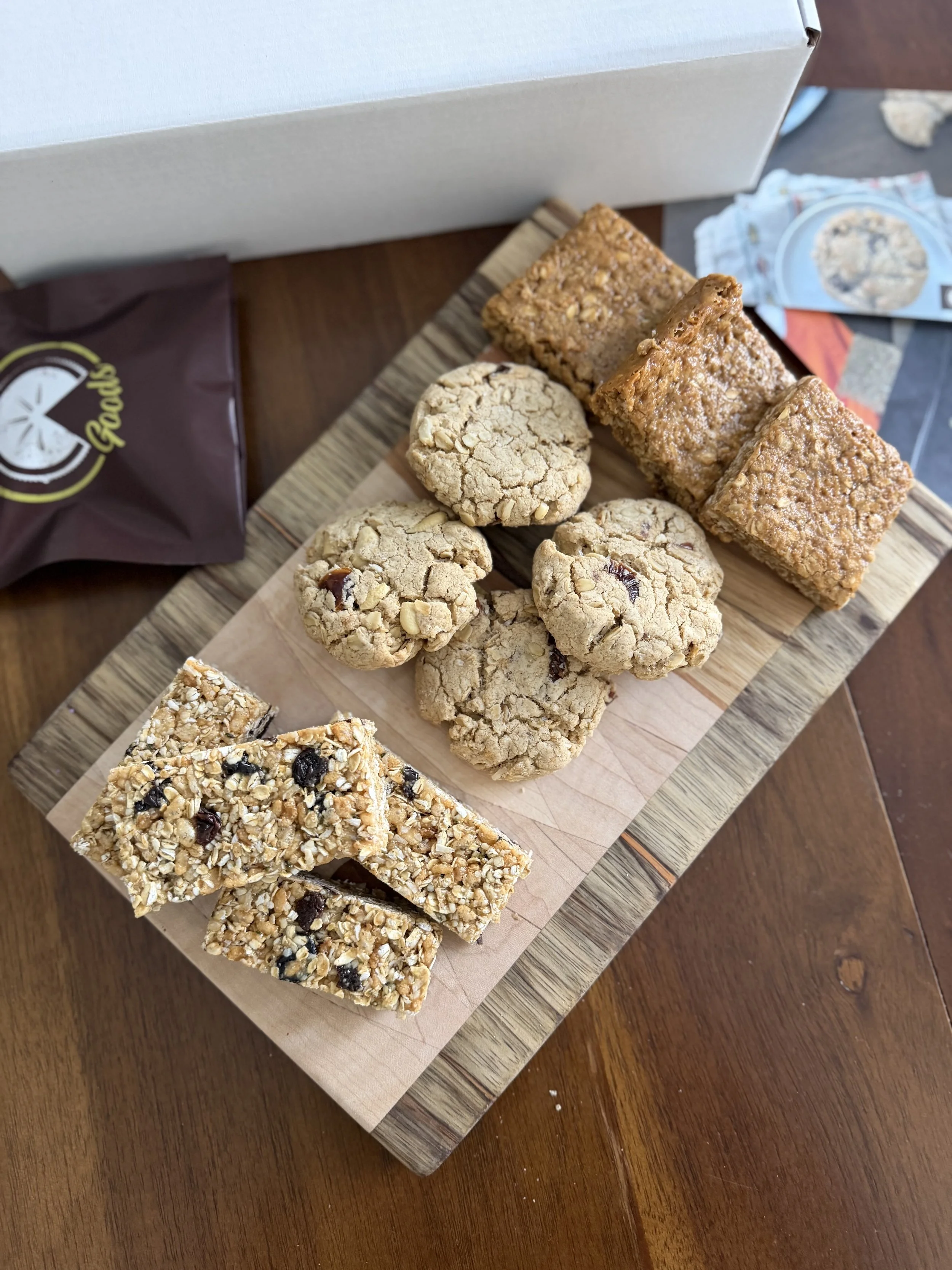 This month’s menu features Happy Biker Bars, Oatmeal Date Cookies, Rice Crispy Granola Bars, and Morning Shift Chocolate Chunk Granola. Summit Share customers also get a bonus item with their order :)